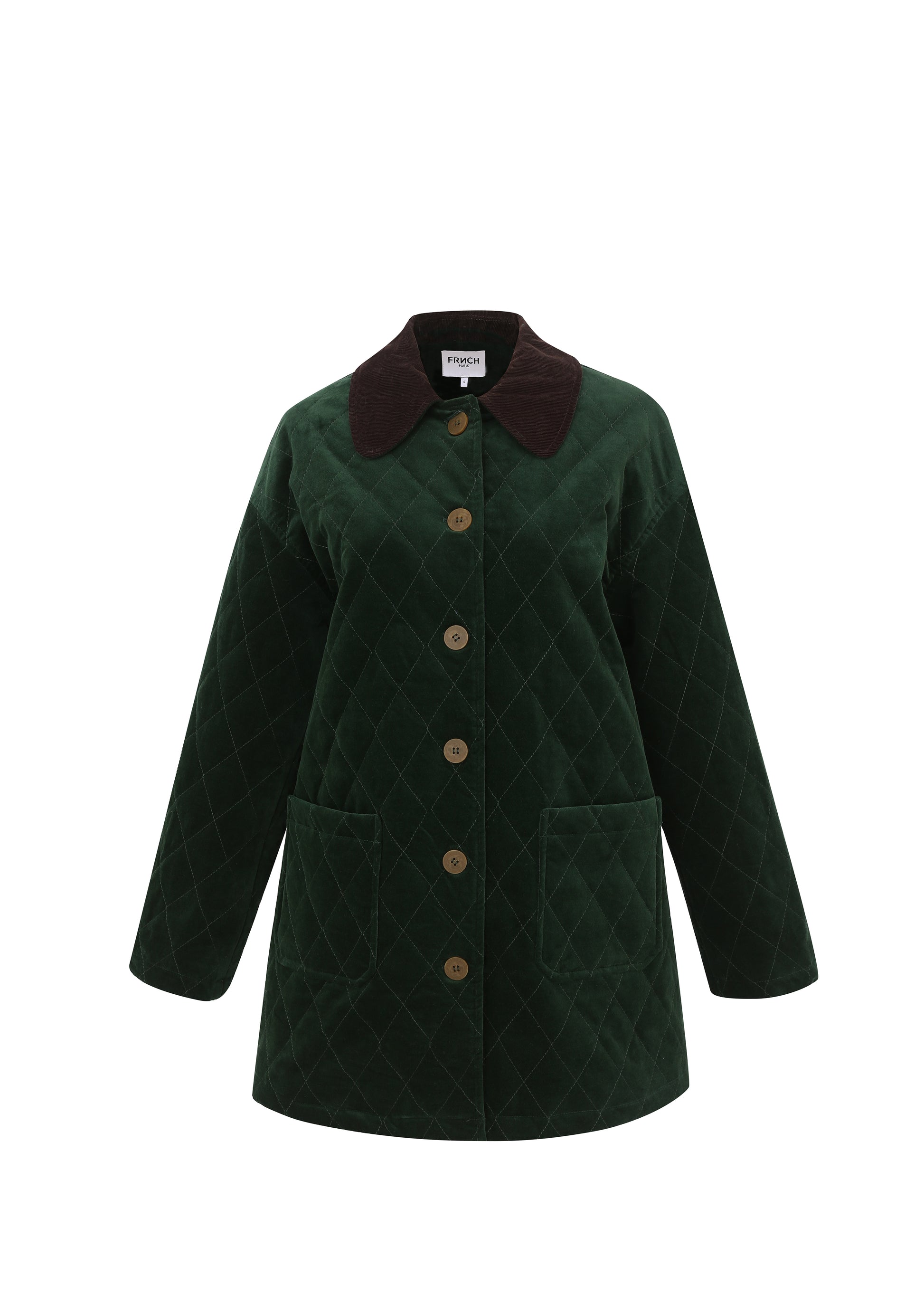 The Laia jacket from Parisian brand FRNCH has that great "country" look. A beautiful and practical padded jacket perfect for the transition to Autumn. The Emerald green colour looks luxurious and the brown corduroy trim and contrasting buttons add to that Lux look. The front pockets are a must and the hem is straight. Sizing is generous.