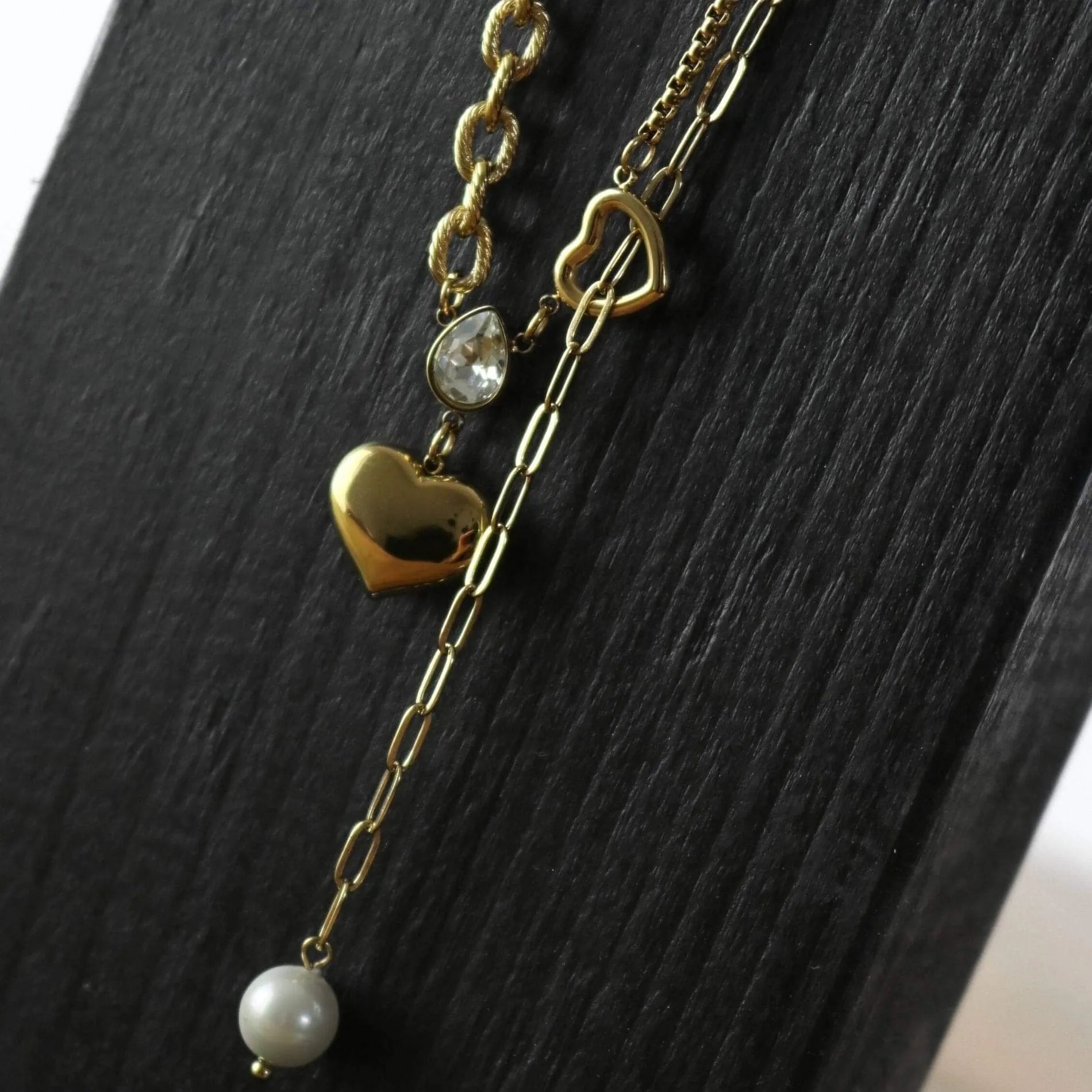 Let your special someone know just how much you care with this elegant Love Waterproof Clear CZ Multi Chain Necklace 18K Gold Plating. Crafted in 18K gold plating and featuring a mix of chains, freshwater pearl, and Cubic Zirconia, this necklace is sure to stand out.