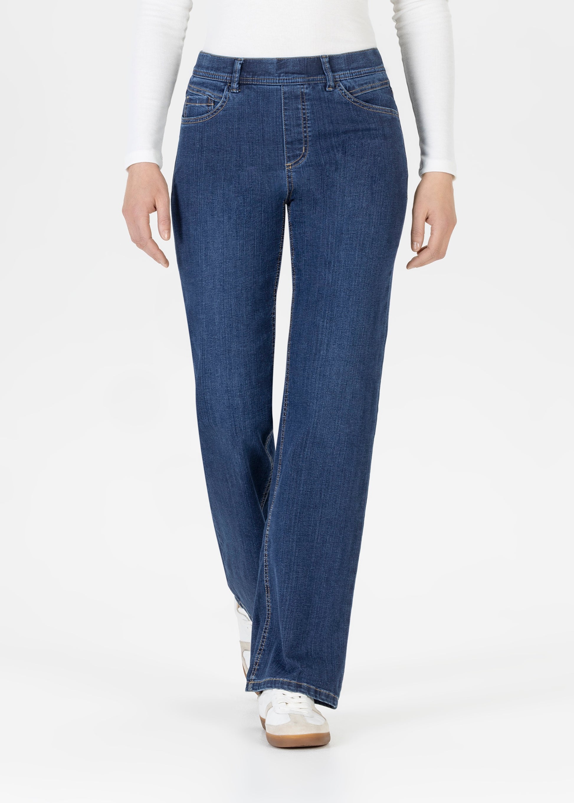 A great Pull-on five-pocket jeans from STEHMANN with a slightly flared leg in super stretch. Thanks to the special Lycra® T400® elastic fibre, these pull-on jeans are super comfortable. For size 38: Inseam 80cm, hem 50cm.